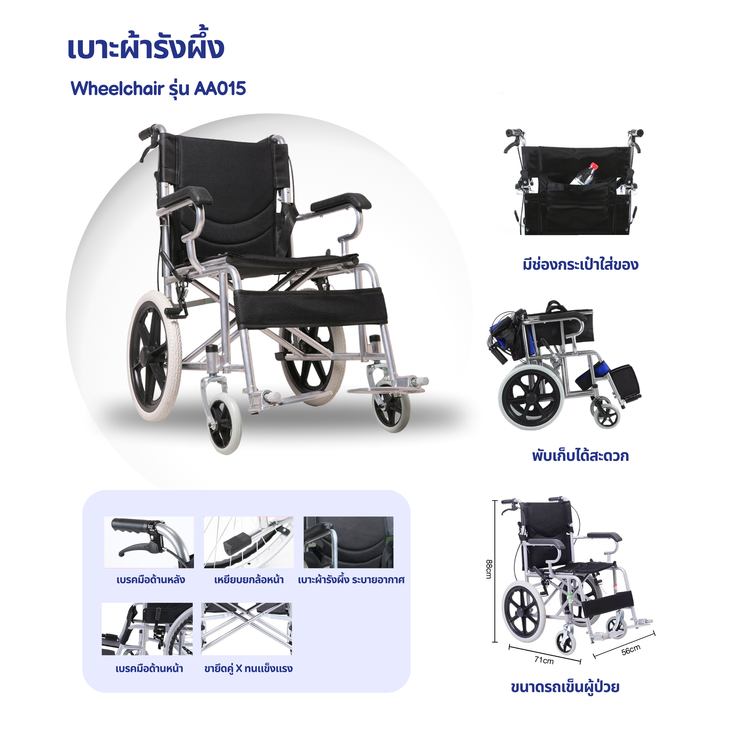 - ความกว้างของรถเข็นรวม 58 เซนติเมตร